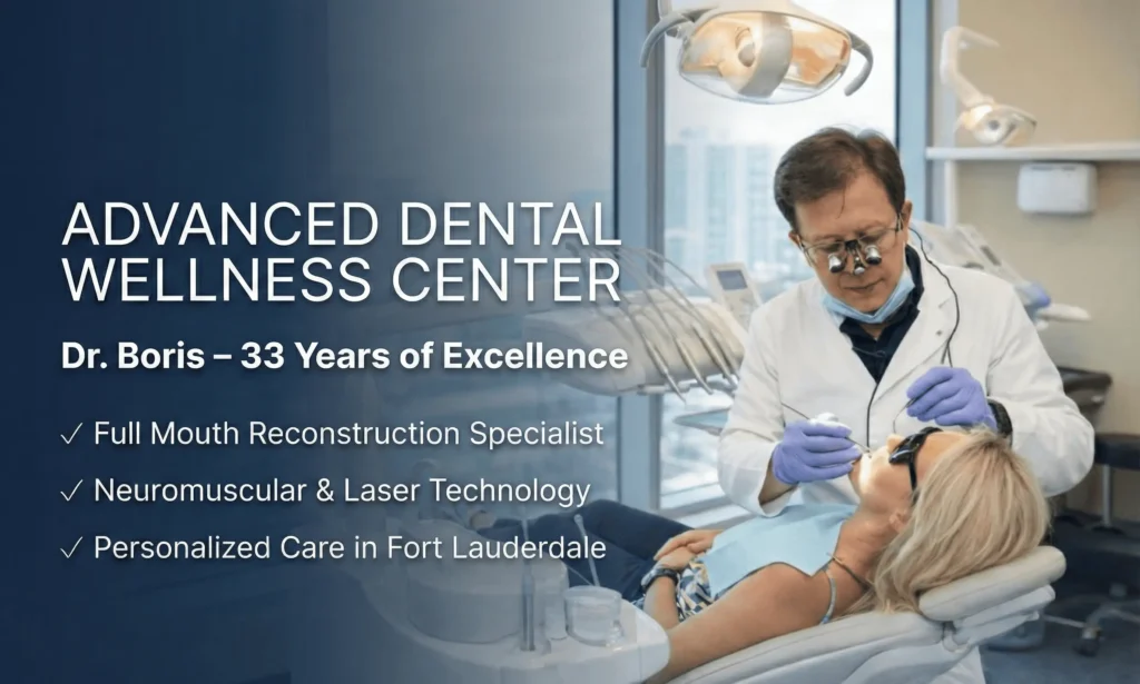Dr. Boris Lipovetskiy is the founder of Advanced Dental Wellness Center and a leading Dentist in Fort Lauderdale with over 33 years of clinical excellence. Proudly serving patients from Fort Lauderdale, Hollywood, Dania Beach, Pompano Beach, Plantation, and Oakland Park.