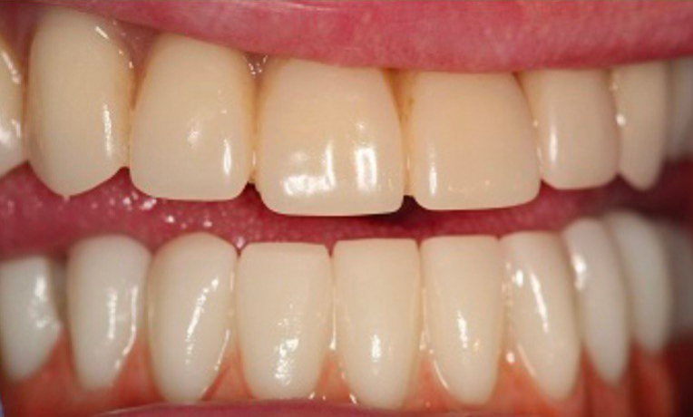 Description: This patient had unattractive upper teeth, slightly worn front incisors, and a yellowish tint to the enamel.