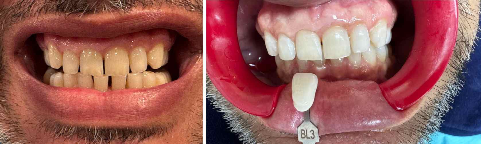 The patient had a naturally dark enamel shade (A3). The color was worsened by staining foods and daily coffee consumption.